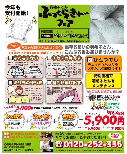 先日告知しまいた、毎年ご好評の羽毛布団【ふっくらきれいフェア】のご予約枠まだ空きがございます❗️