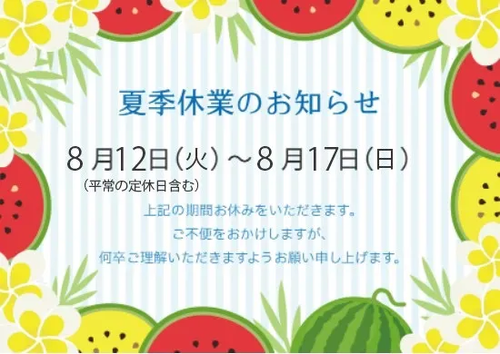 夏季休業のお知らせ 2025年